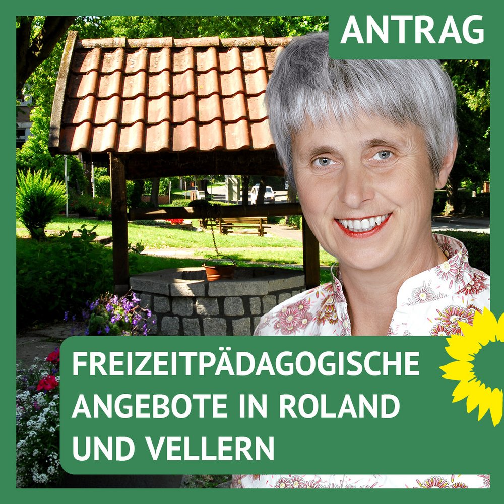 Antrag von Ute Zeyn für DIE GRÜNEN. Die Grünen beantragen die Einführung eines regelmäßigen freizeitpädagogischen ortsnahen Angebots für Kinder im Alter zwischen 6 und 14 Jahren für die Ortsteile Roland und Vellern. Für dieses Angebot sollen 10 TSD Euro im Haushalt 2026 berücksichtigt werden.