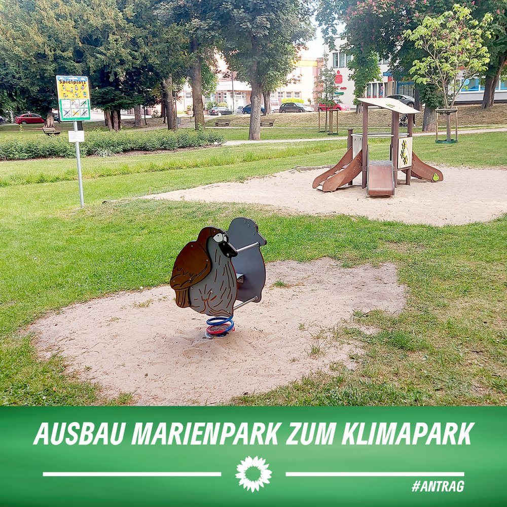 Die Fraktion Bündnis 90/Die Grünen beantragt, dass die Stadt Beckum ein Konzept zur Erhöhung der Aufenthaltsqualität des Marienparks unter besonderer Berücksichtigung von Maßnahmen, welche die Klimaresilienz steigern, entwickelt und im zuständigen Ausschuss vorstellt. Die Möglichkeit der Umsetzung unter Aufnahme in das Integrierte Städtebauliche Entwicklungskonzept (ISEK) für Beckum soll geprüft werden.