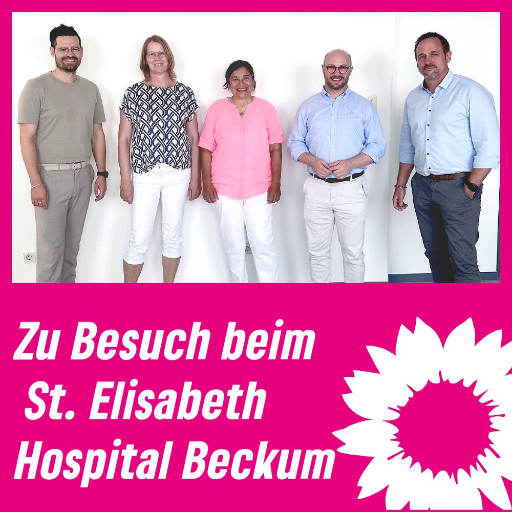 „Das St. Elisabeth-Hospital ist ein unverzichtbarer Bestandteil der medizinischen Versorgung in Beckum. Mein ausdrücklicher Dank gilt allen Mitarbeiterinnen und Mitarbeitern für ihren täglichen Einsatz – und dem gesamten Leitungsteam für die stets vertrauensvolle und konstruktive Zusammenarbeit mit der Stadt Beckum“, betonte Bürgermeister Michael Gerdhenrich zu Beginn eines gemeinsamen Besuchs mit der Ortsverbandsvorsitzenden Ingeborg Seliger und der Fraktionsvorsitzenden Nadhira de Silva von Bündnis 90/Die Grünen Beckum.